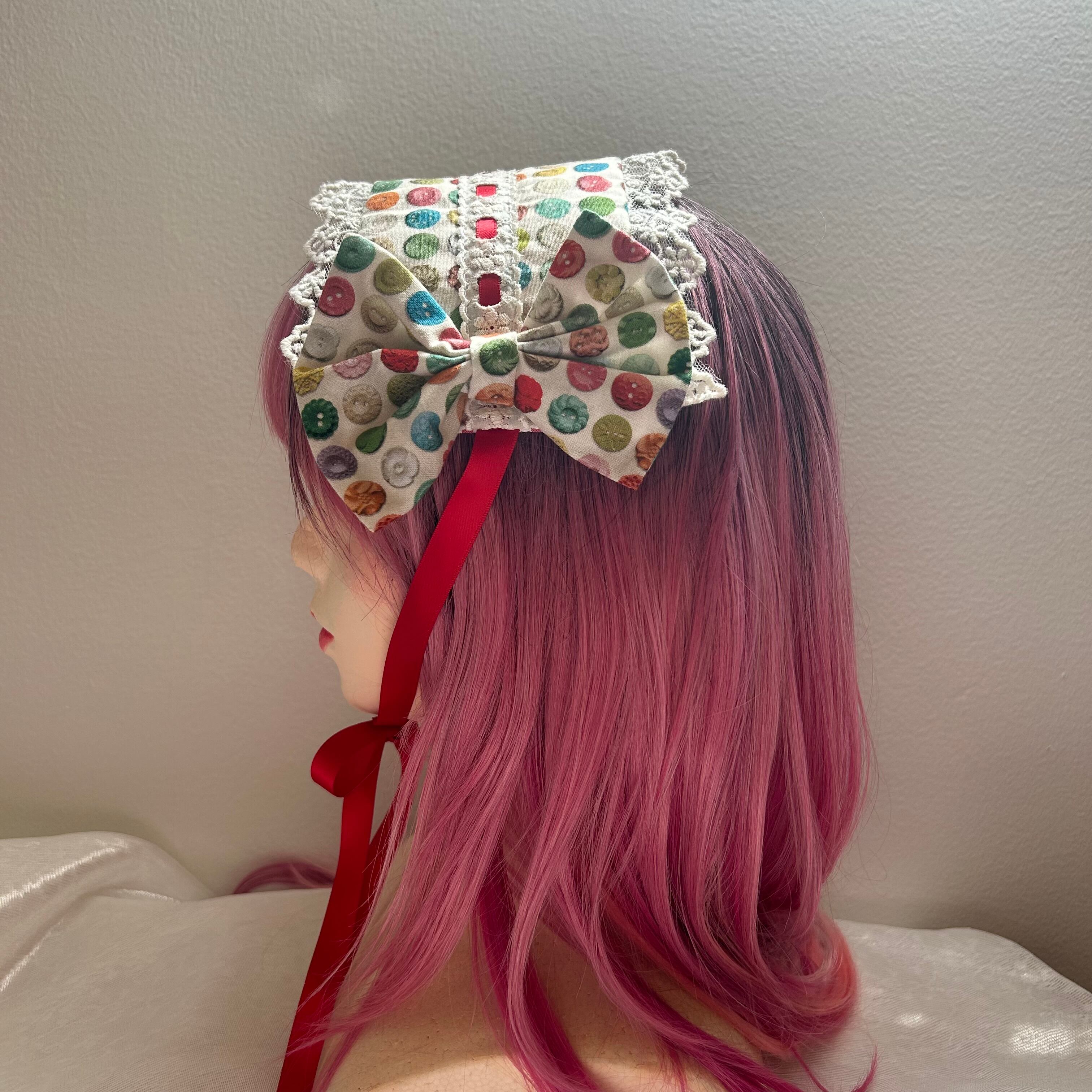 クラシカルなスタイルに似合いそうなヘッドドレス、赤いおりぼんがポイントです