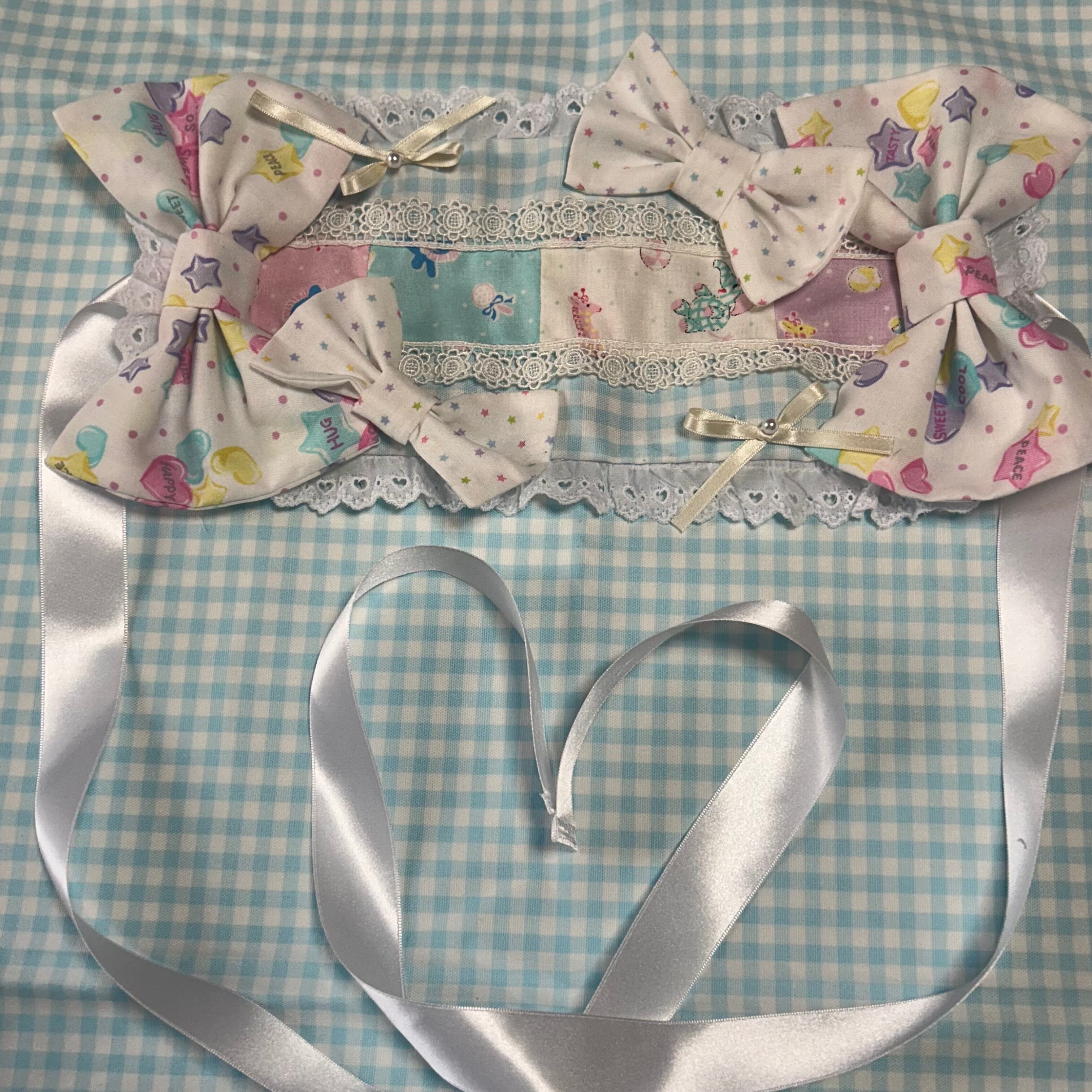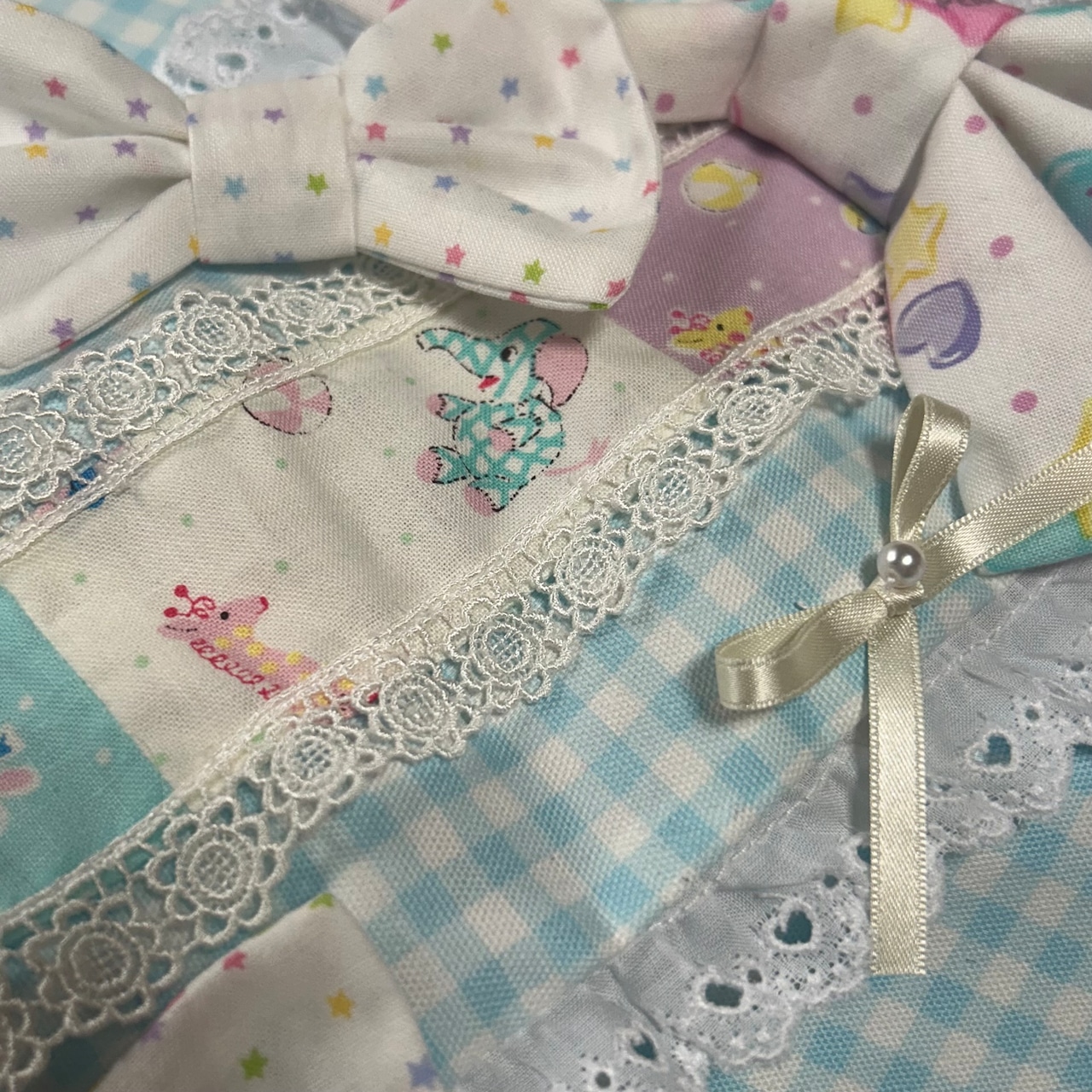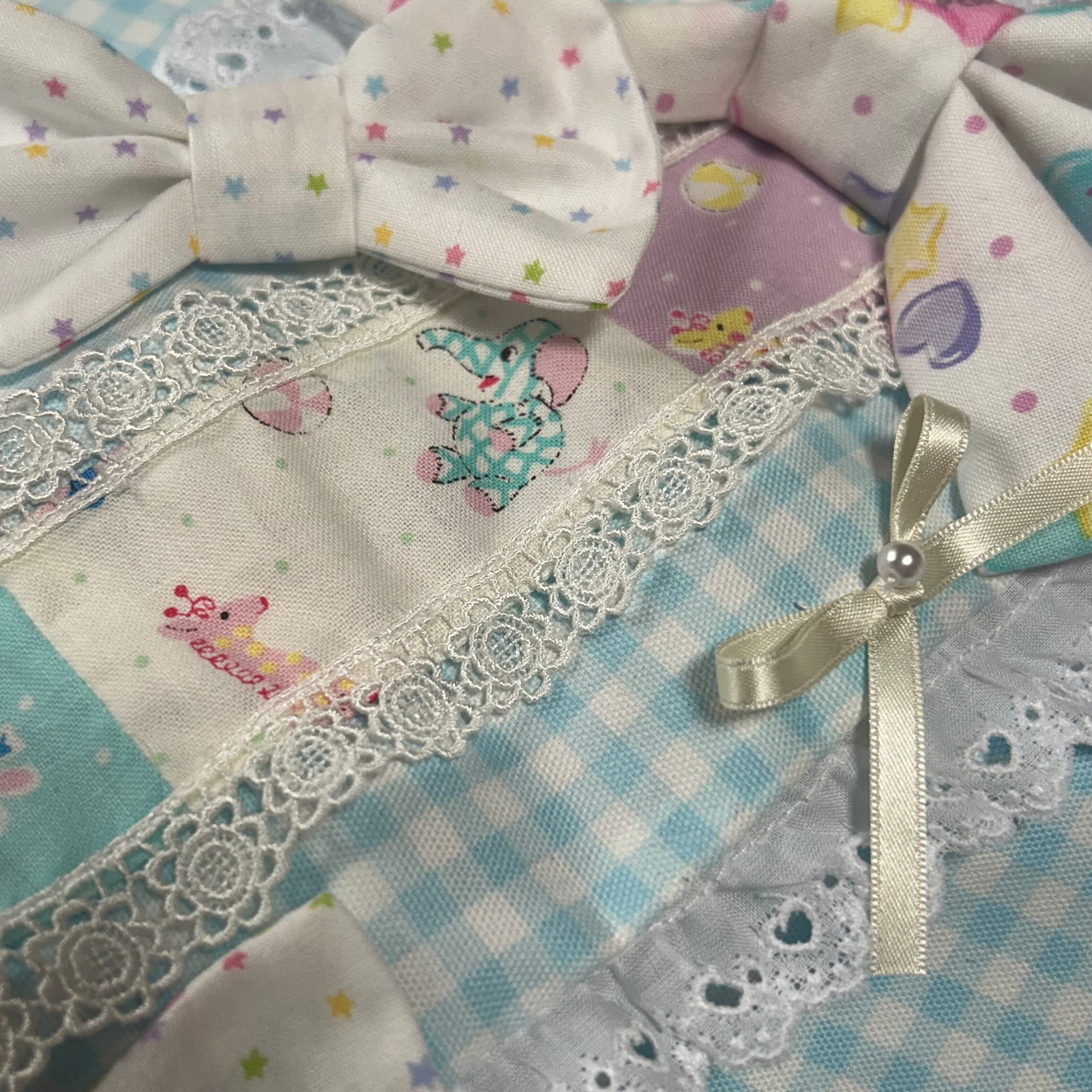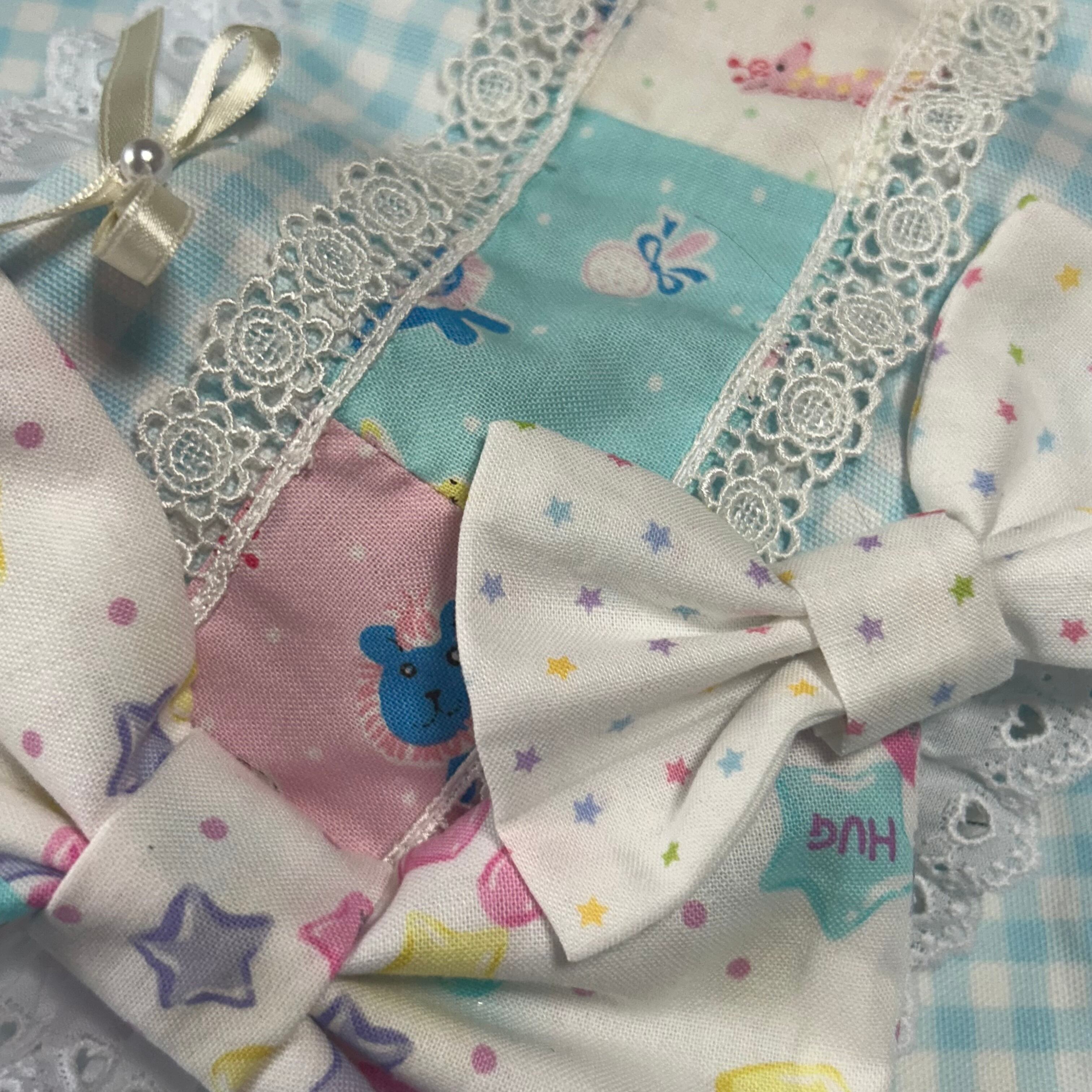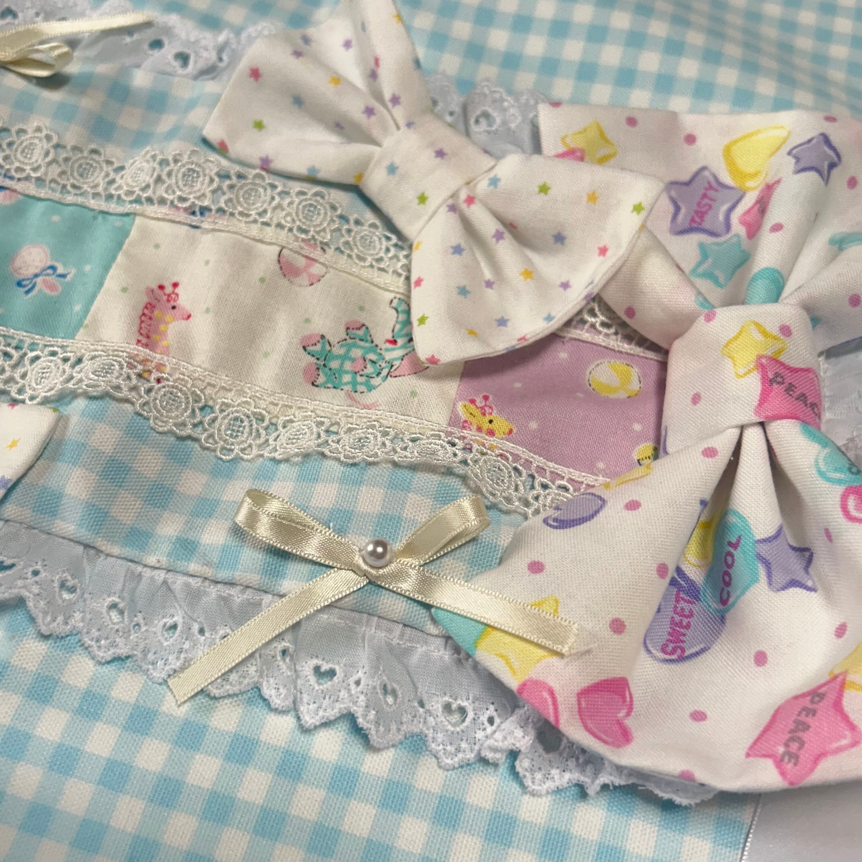 星柄、キャンディ柄、ぬいぐるみ柄などポップな生地で愛らしくまとめました。