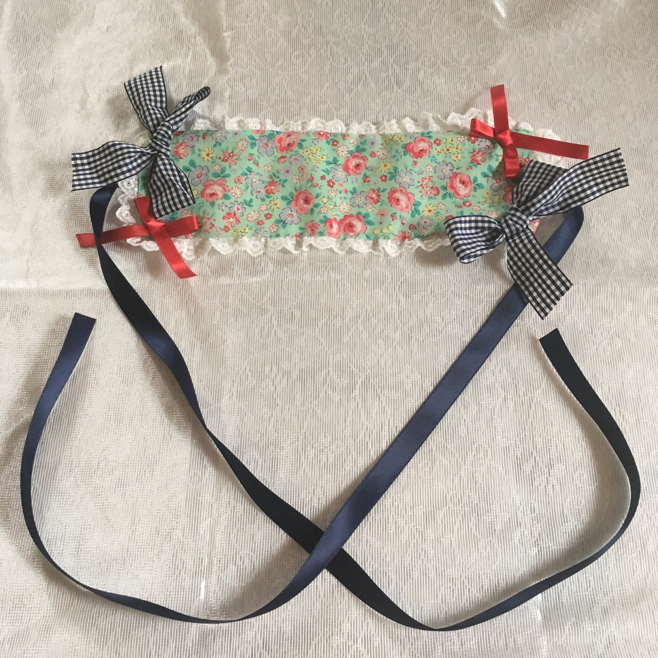紺のりぼんに赤のりぼん白いレースでトリコロール!なヘッドドレス どことなくスクールガール風な気がするな〜と思いながら製作しました!