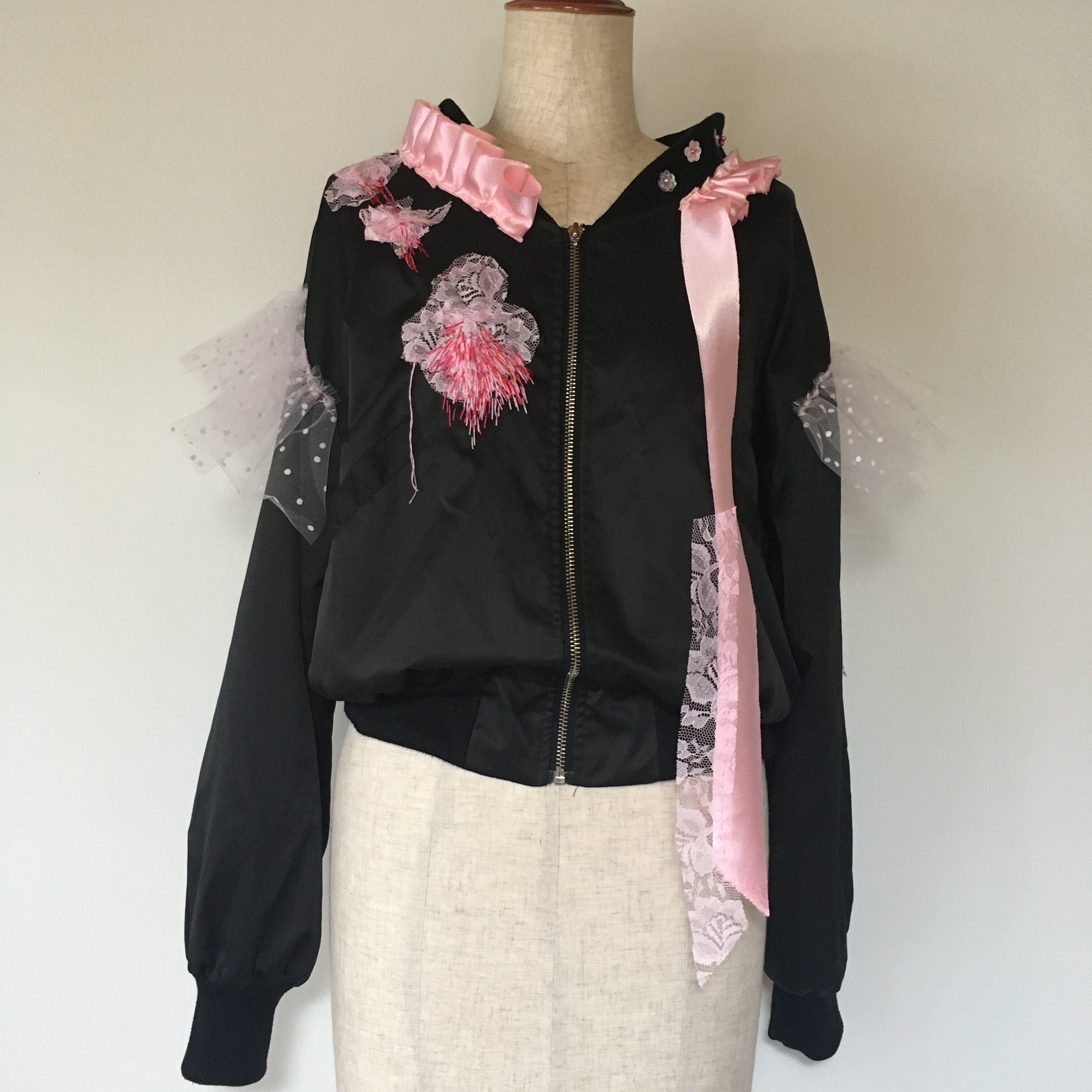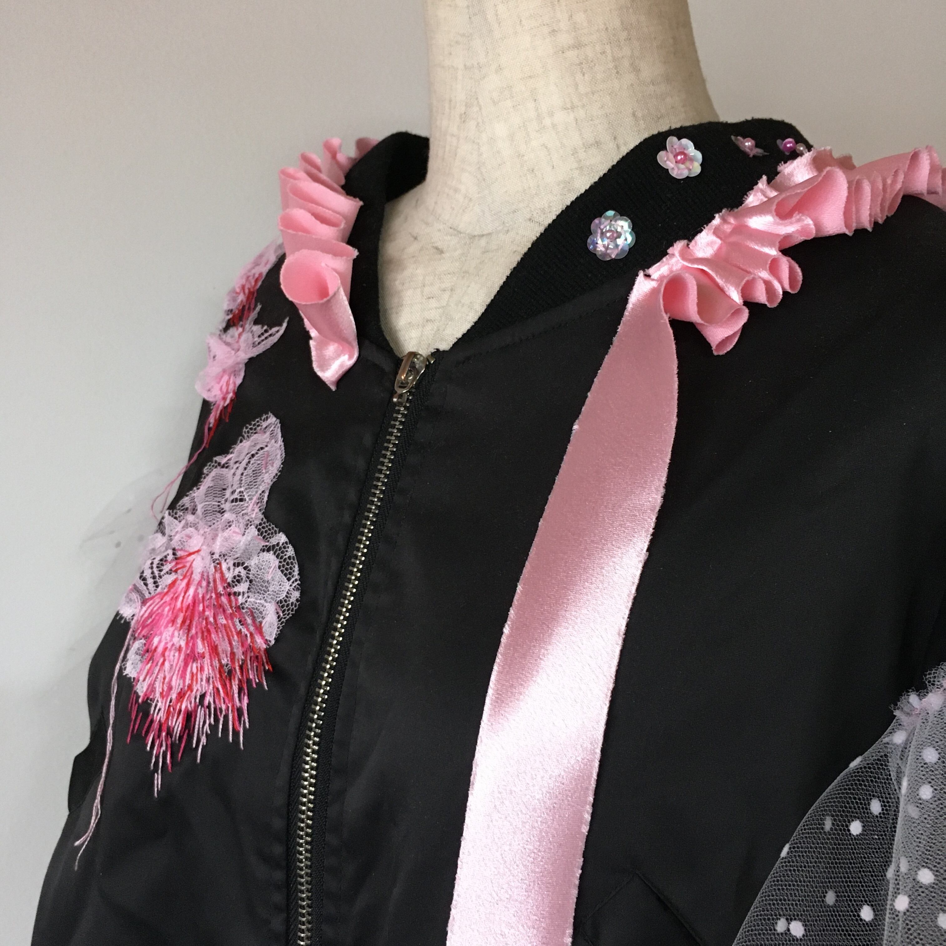 ピンクチュールや切りっぱなしのピンク生地を使いリメイク