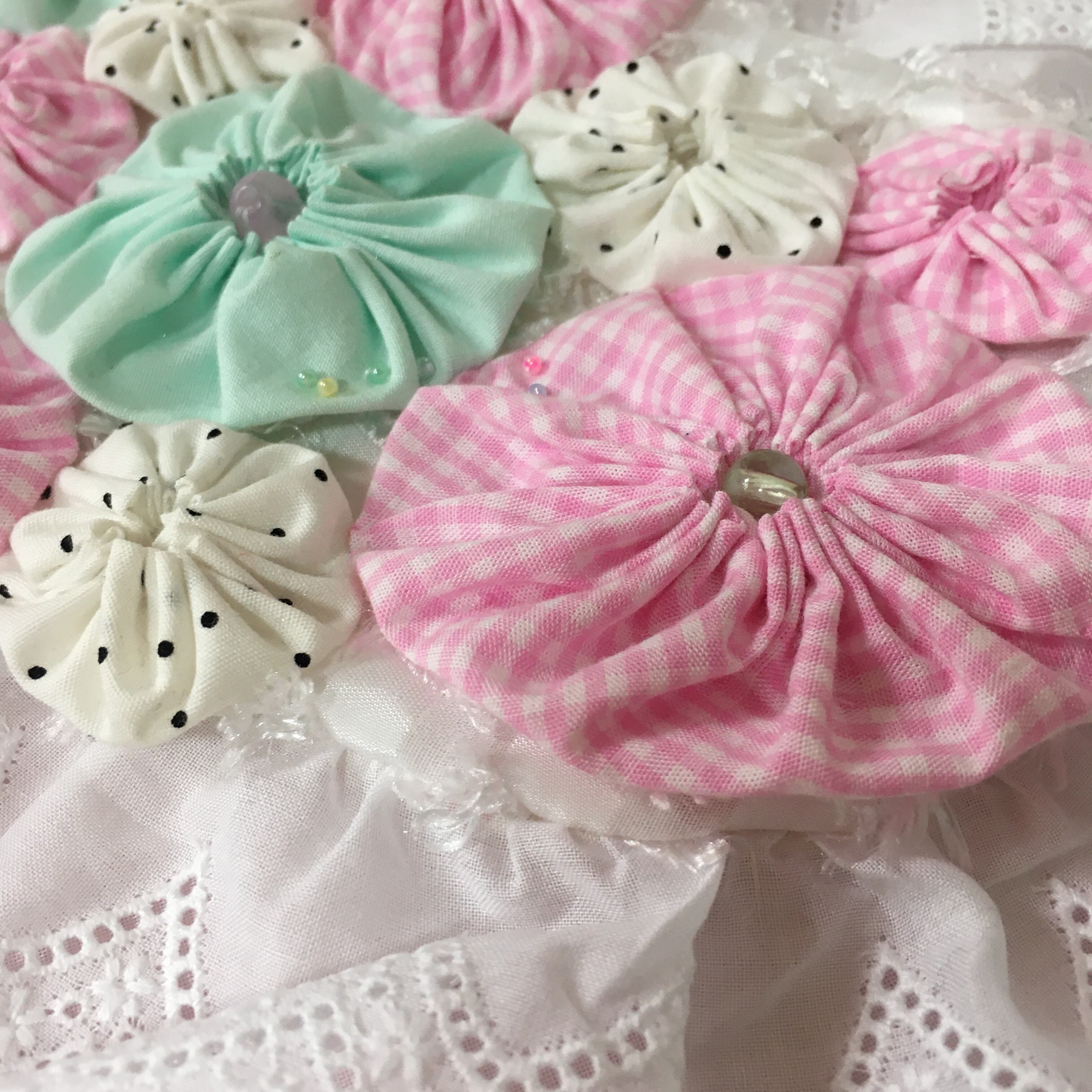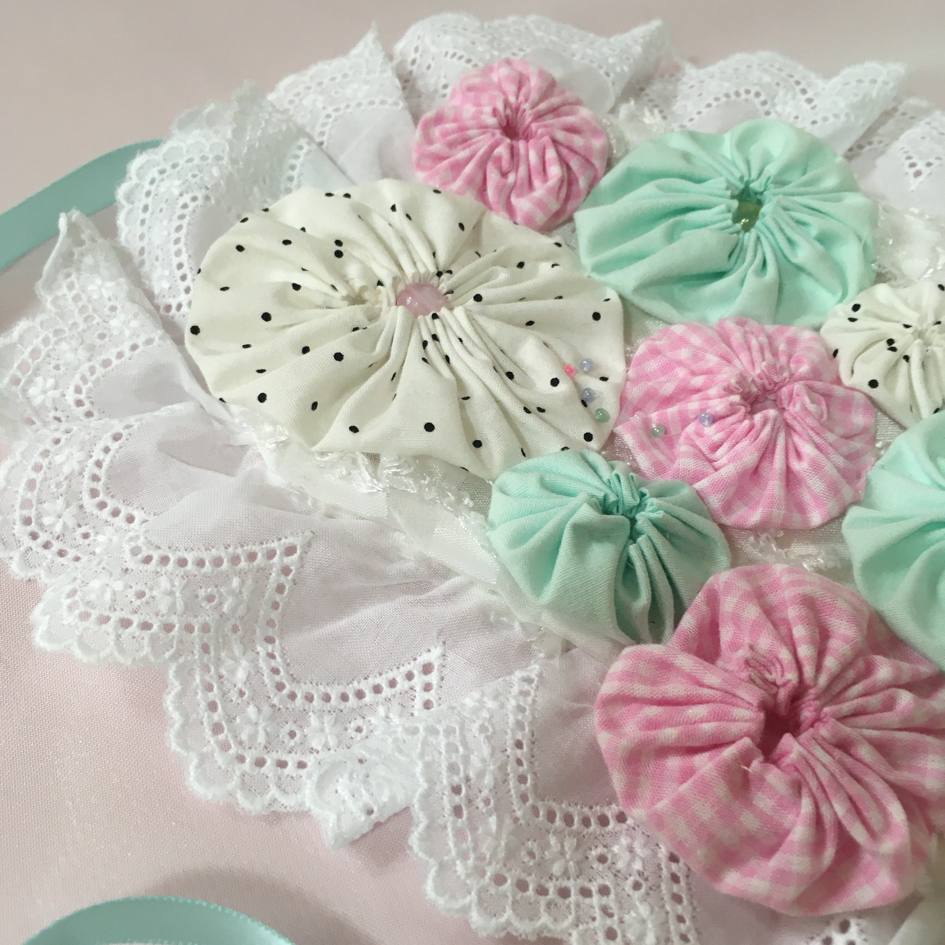 ヨーヨーキルトを使った風変わりなヘッドドレス