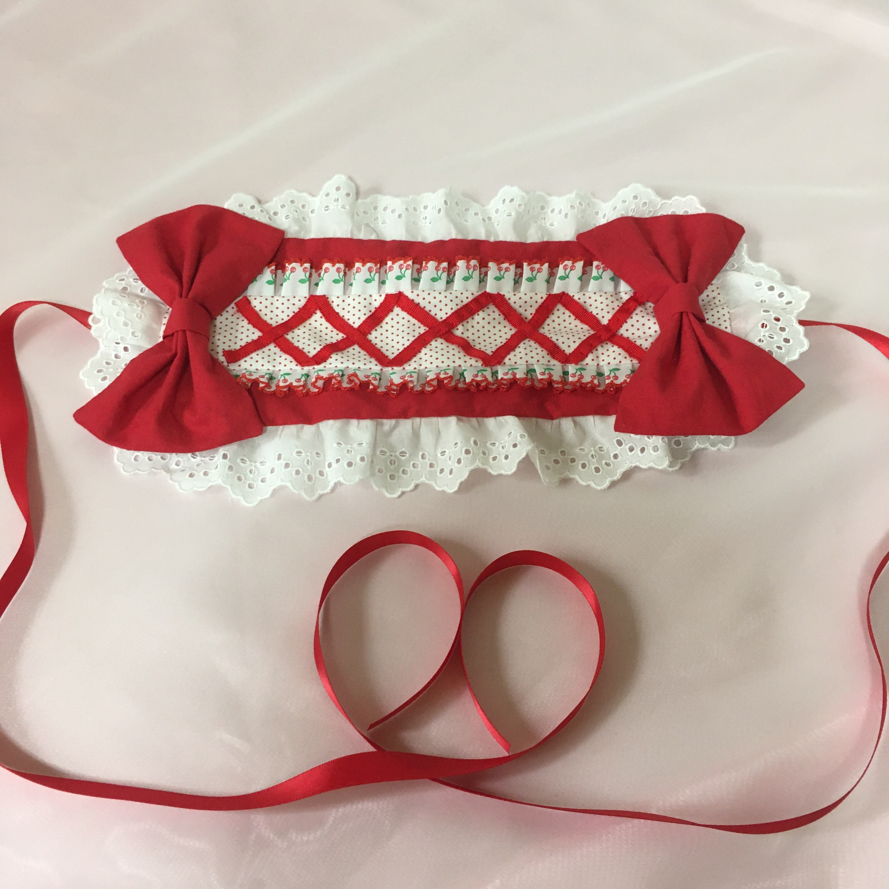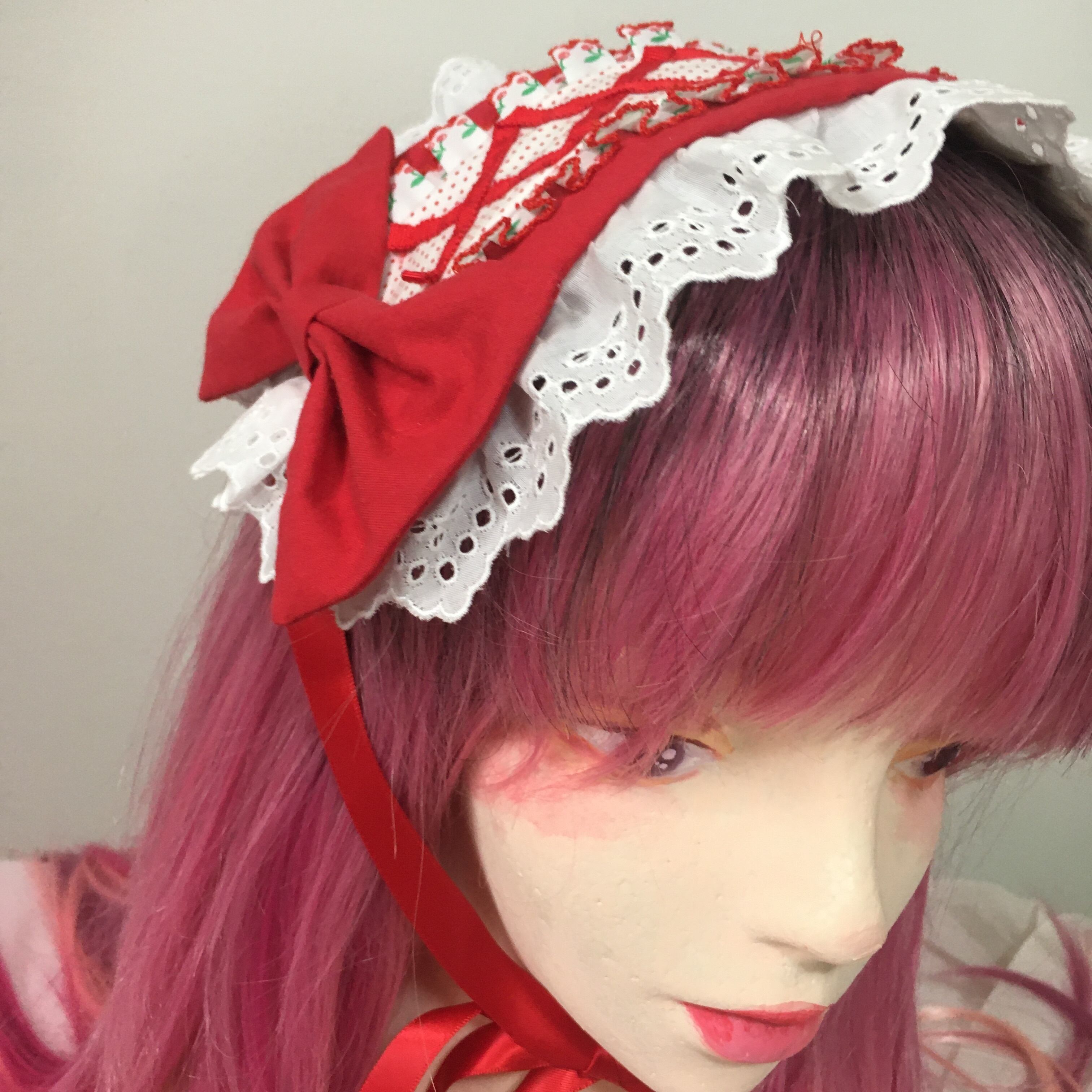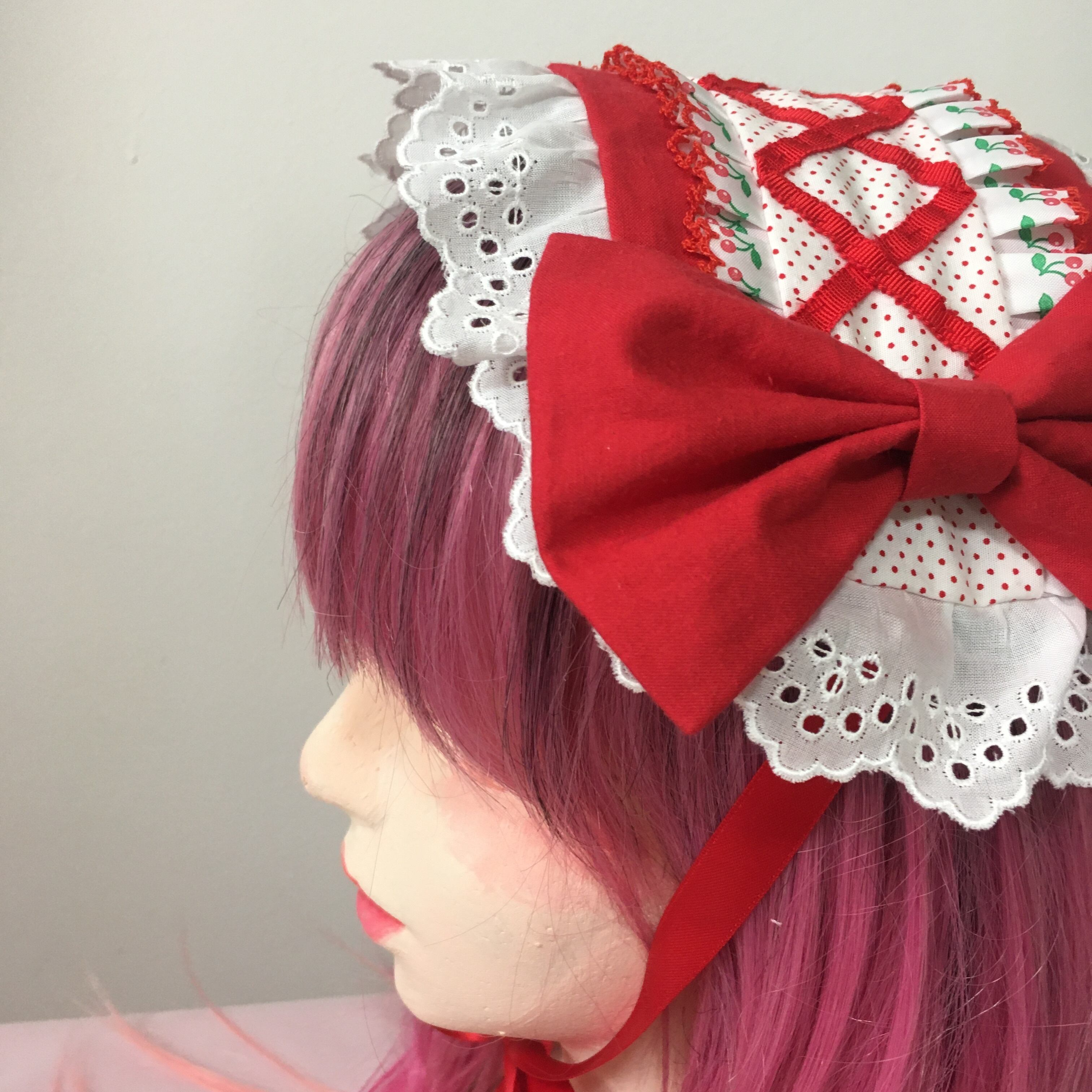 さくらんぼ柄のフリルを使いポップな印象のヘッドドレスに